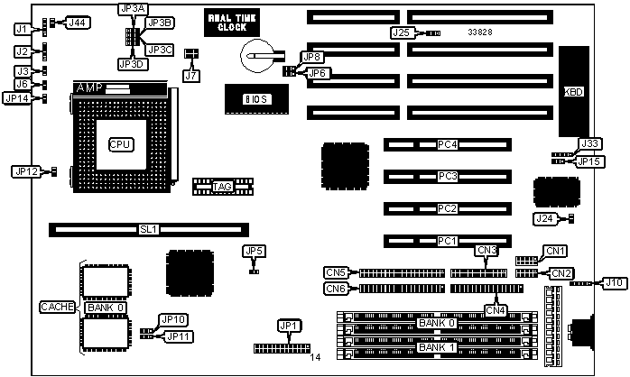 Note: Board accepts EDO memory. Board also accepts x 32 SIMMs. Banks are interchangeable. | ||