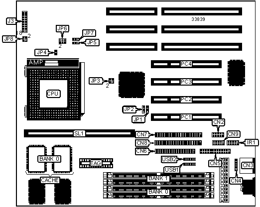 32-bit PCI slots (4), floppy drive interface, green PC connector, IDE interfaces (2), parallel port, PS/2 mouse port, PS/2 mouse interface, serial ports (2), cache slot, IR connector, USB connectors (2) |