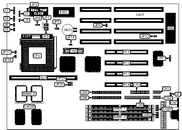 32-bit PCI slots (4), floppy drive interface, green PC connector, IDE interfaces (2), parallel port, PS/2 mouse port, serial ports (2), cache slot, IR connector, USB connectors (2) |