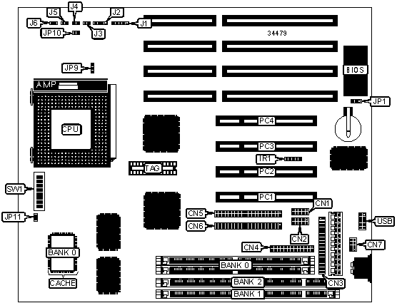 Note: Board accepts EDO memory. Memory installed in Banks 1 & 2 is interchangeable.