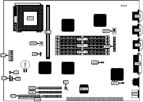 Floppy drive interface, IDE interfaces (2), parallel port, PS/2 mouse port, serial ports (2), cache slot