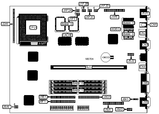 Note: Board accepts EDO memory. Board also accepts x 32 SIMMs.