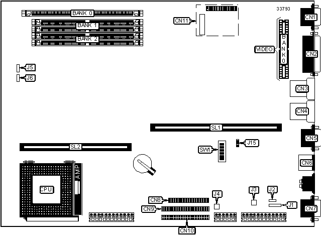 Note: Board accepts EDO memory. Board also accepts x 32 SIMMs.
