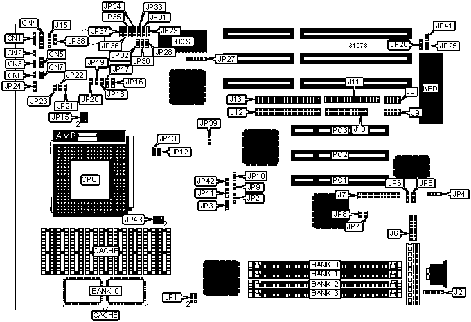 Note: Board accepts EDO memory. Board also accepts x 32 SIMMs.