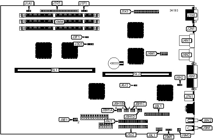 Note: Board is factory installed with 2MB video memory. The location is unidentified. |