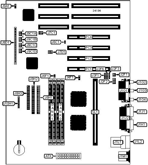 Note: Board accepts EDO memory. Board also accepts x 32 SIMMs. | ||