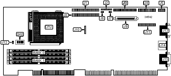 Note: Board is factory installed with 1MB video memory. The location of the video memory is unidentified.