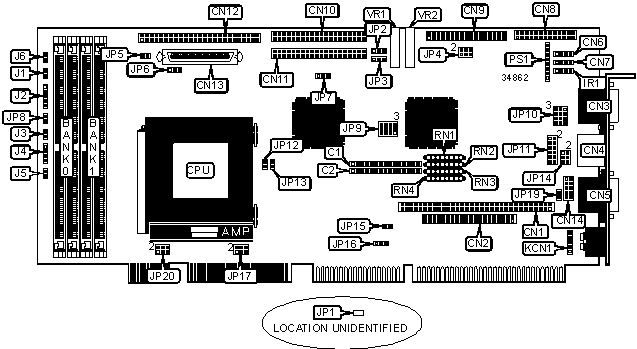 Note: Board accepts 1MB/2MB video memory. The location is unidentified. |