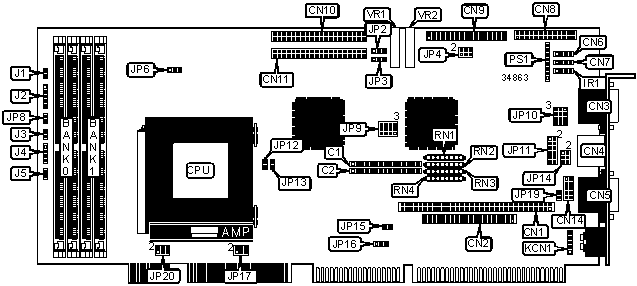 Note: Board accepts 1MB/2MB video memory. The location is unidentified.