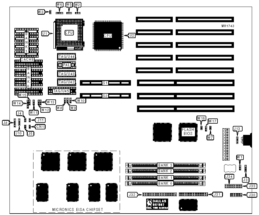 Note: W18 may not appear on the system mainboard, depending upon the clock chip installed. If W18 is present, use it instead of W17. The location of W18 is unknown. |