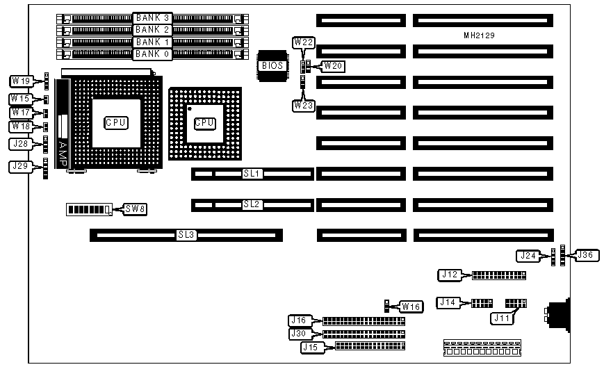 External cache card, 32-bit VESA local bus slots (2), floppy drive interface, IDE interface (2), parallel port, serial ports (2)