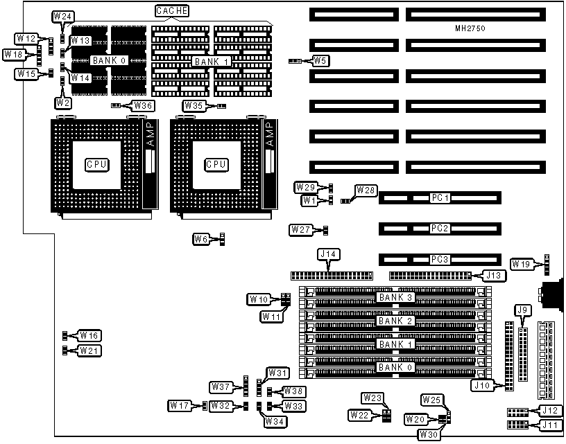 32-bit PCI slots (3), floppy drive interface, IDE interfaces (2), parallel port, serial ports (2)