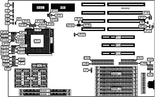 Parallel port, serial ports (2), 32-bit PCI slots (3), green PC connector, floppy drive interface, IDE interfaces (2)