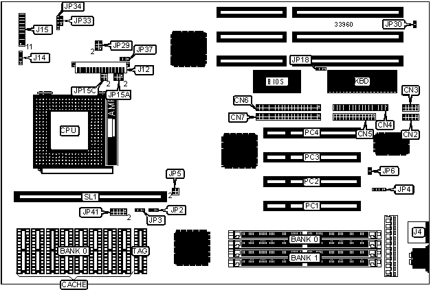 Note: Board accepts EDO memory. Banks are interchangeable.