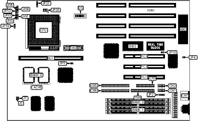 Note: Board accepts EDO memory. Banks are interchangeable.