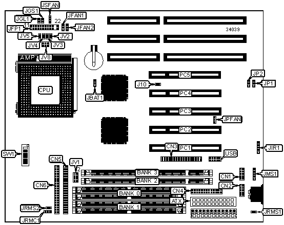Note: Board accepts EDO memory. Do not install SIMMs & DIMMs at the same time. If both are used, DIMMs must be 5v. | ||