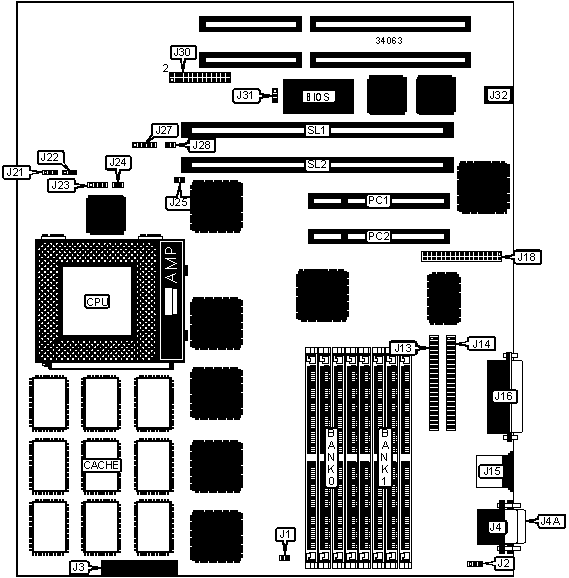 Note: Board can be installed with either 1MB or 2MB of cache. The size of the chips is unidentified.