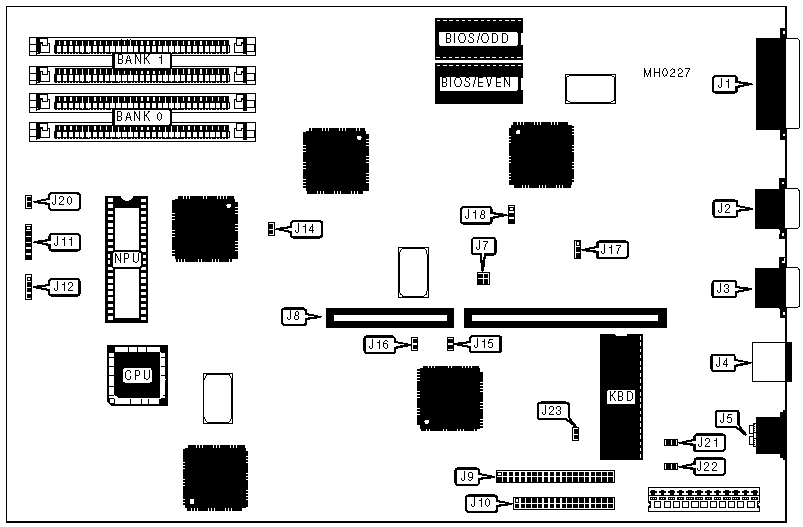 Parallel port, serial ports (2), PS/2 mouse port, floppy drive interface, IDE interface |