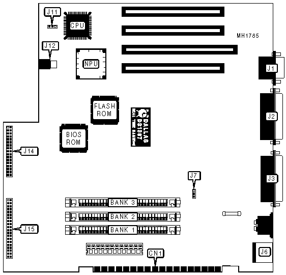 32-bit MCA bus slot with video extension, Floppy drive interface, IDE interface, parallel port, PS/2 mouse port, serial port, VGA port |