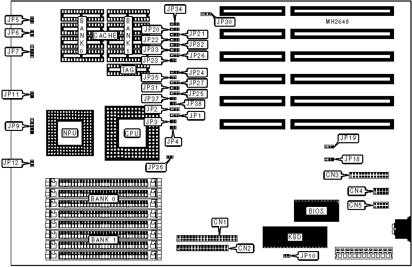 Floppy drive interface, IDE interface, parallel port, serial ports (2)