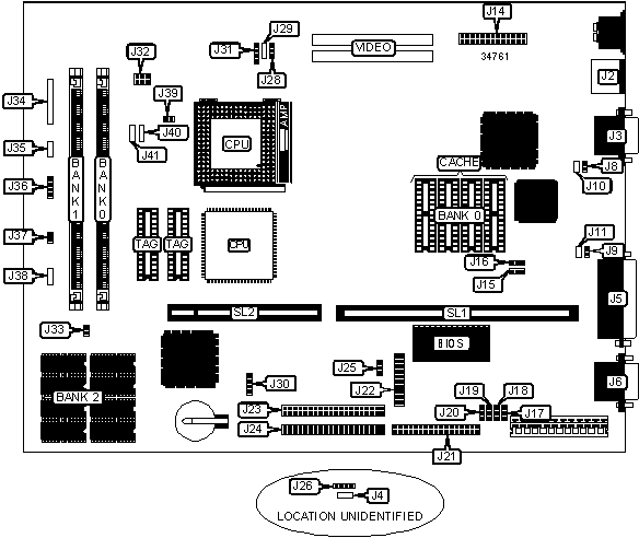 Note: If J37 is set to enabled, add 4 MB to the size column to get correct memory size. If 64MB is installed, J37 must be disabled.
