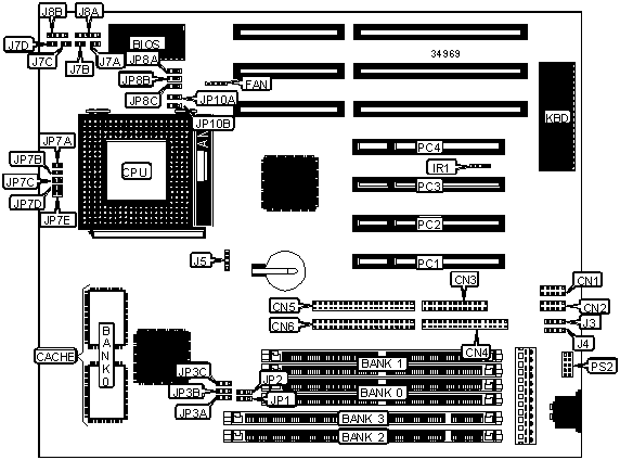 Note: Board accepts EDO & SDRAM memory. Banks 0 & 1, 2 & 3 are interchangeable.