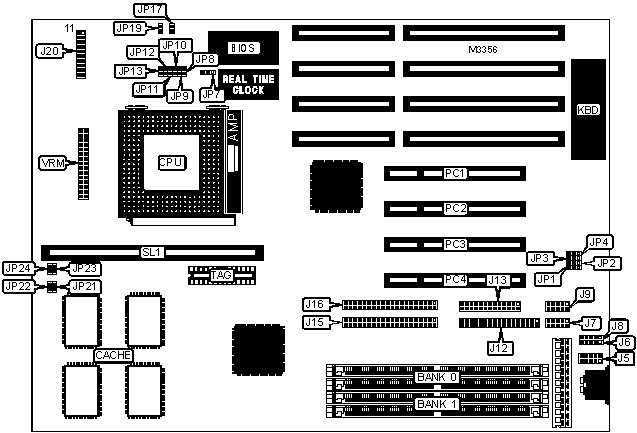 Note: Board accepts EDO memory. Board also accepts x 32 SIMMs. | ||