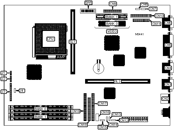 Note: Board accepts EDO memory. Board also accepts x 32 SIMMs. | ||