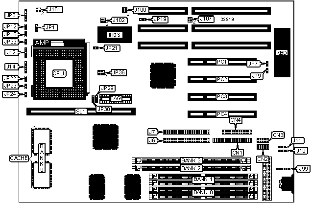 Note: Board accepts EDO memory. Banks are interchangeable.