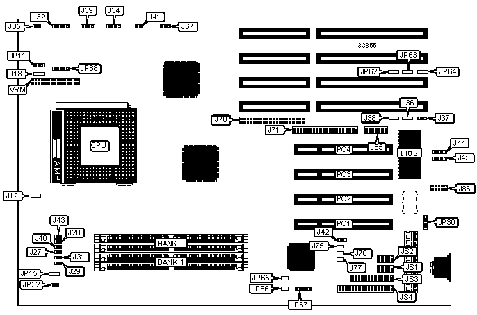 Note: Board accepts EDO memory. Board also accepts x 32 SIMMs.