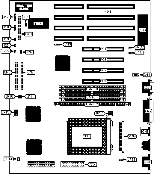 Note: Board accepts EDO memory. Board also accepts x 32 SIMMs. Banks 0 & 1 are interchangeable. | |||