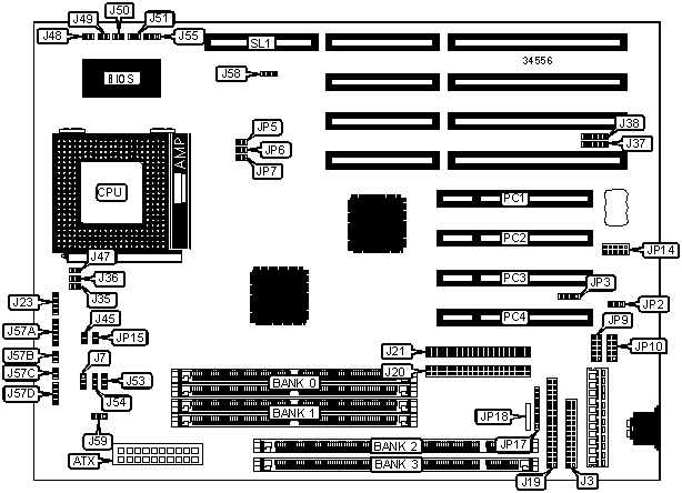 Note: Board accepts EDO memory. Do not populate banks 0 & 2 at the same time. Use only FPM/EDO in bank 0. | ||
