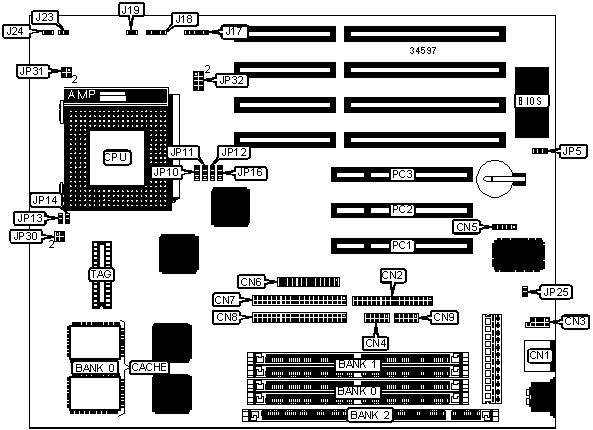 Note: Board accepts EDO memory. Banks are interchangeable.