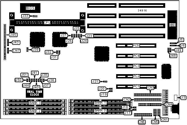 Note: The location of the following jumpers are unidentified: J7, J8, J28, J29, J30, J34 & J46.