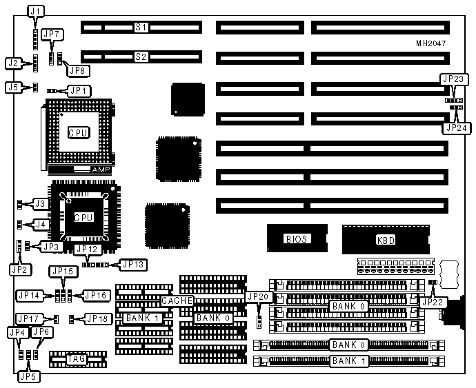 Note: JP24 must be returned to its original position (pins 2 & 3 closed) after CMOS clear. | ||
