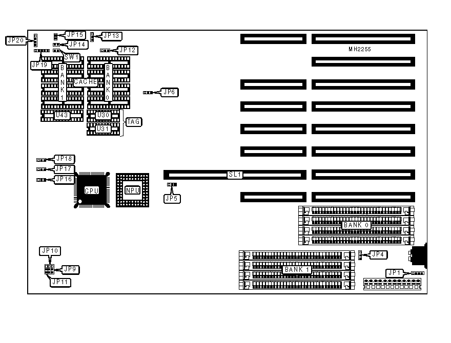 Note: Pins designated should be in the closed position. The location of JP8 is unknown.