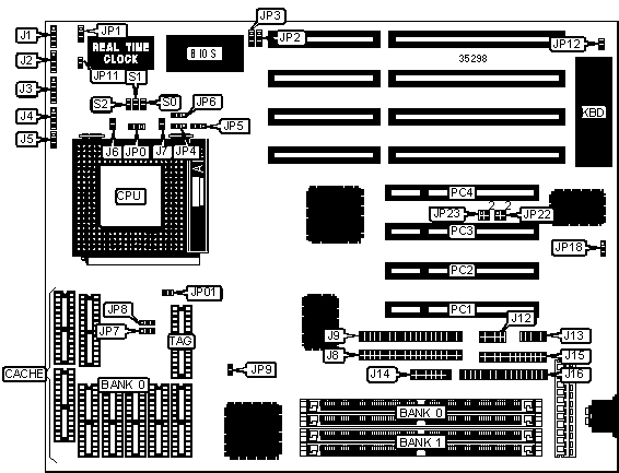 Note: Board accepts EDO memory. Banks are interchangeable. | ||