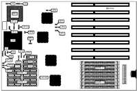 CPU slot, 32-bit VESA local bus slots (2), floppy drive interface, IDE interface, SCSI interface (optional), parallel port, PS/2 mouse port, serial ports (2)