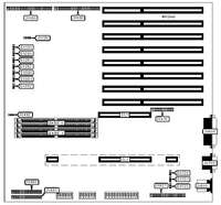 Floppy drive interface, IDE interface, multi-function connector (power LED, turbo SW1itch, keylock, and reset), parallel port, PS/2 keyboard connector, PS/2 mouse port, serial port,VGA feature connector, VGA port
