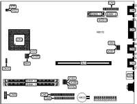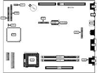 Auxiliary bus slots (6), CPU slot, floppy drive interface, IDE interface, parallel port, PS/2 mouse port, serial ports (2)