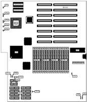 PS/2 mouse port, parallel port, serial ports (2), VGA port, VGA feature connector, video display board connector, 10 base T connector, 10 base 2 connector, floppy drive interface, IDE interface, 32-bit VESA local bus slot