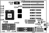 32-bit PCI slots (3), 32-bit VESA local bus slots (2), floppy drive interface, IDE interface, parallel port, PS/2 mouse port, serial ports (2)
