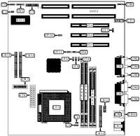 32-bit PCI slots (4), floppy drive interface, green PC connector, IDE interfaces (2), parallel port, PS/2 mouse port, serial ports (2), VRM module connector, cache slot