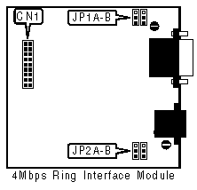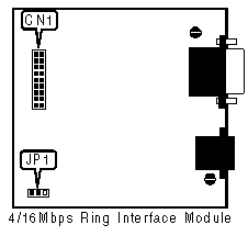 There are three other ring interface modules available: fiber optic, 4Mbps STP only software configurable, and 4/16Mbps STP only software configurable. These additional modules have no hardware configurable options, and are therefore not illustrated. Connections between the ring interface module and the mother card are identical for every version of module.