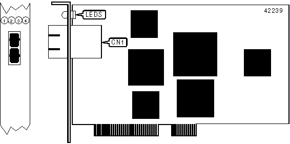 Note: When the 5511 is either powered up or reset, the SMT processor automatically performs a series of onboard diagnostics. If the diagnostics complete successfully, LED4 (Error LED) will go to Off. If the diagnostics complete unsuccessfully, LED4 will remain on indicating processor initialization failure, and the adapter will be inoperational. | |||