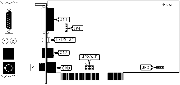 Unshielded twisted pair AUI transceiver via DB-15 port RG-58A/U 50ohm coaxial |