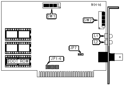 Note: If LEDs L1 & L2 continue to blink for an extended amount of time, this indicates a network problem such as a defective card, a broken network connection, or a hub failure. |
