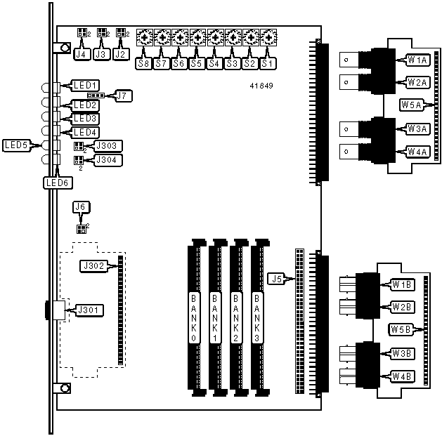 A total of 134,217,728 address settings are available. Switches S1 through S7 set the hexadecimal memory address. SW1 is the Most Significant Nibble and switch SW7 is the Least Significant Nibble, though the bottom two bits of SW7 are always 0. The switches have the following decimal weight values: SW1=4,194,304, SW2=2,097,152, SW3=1,048,576, SW4=65,536, SW5=4,096, SW6=256, SW7=16. Set the switches, multiply the number on the switch by its weight value, add the values obtained for each switch, and round down to the nearest multiple of 64 to obtain the correct memory address.