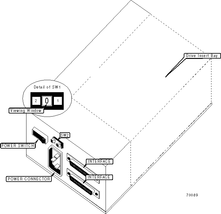 Note: SCSI ID is selected by activating SW1 until the desired number is displayed in the viewing window. |