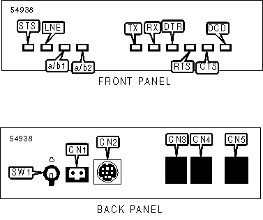 Power connector, power switch, serial port, RJ-14 ports (2), ISDN interface (RJ-45) |